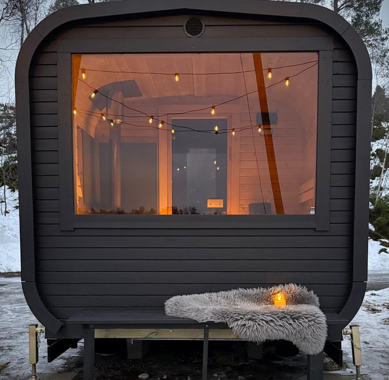 Det finns ved, vatten, högtalare och ett par bastumössor att låna. Allt du behöver för en härlig upplevelse!