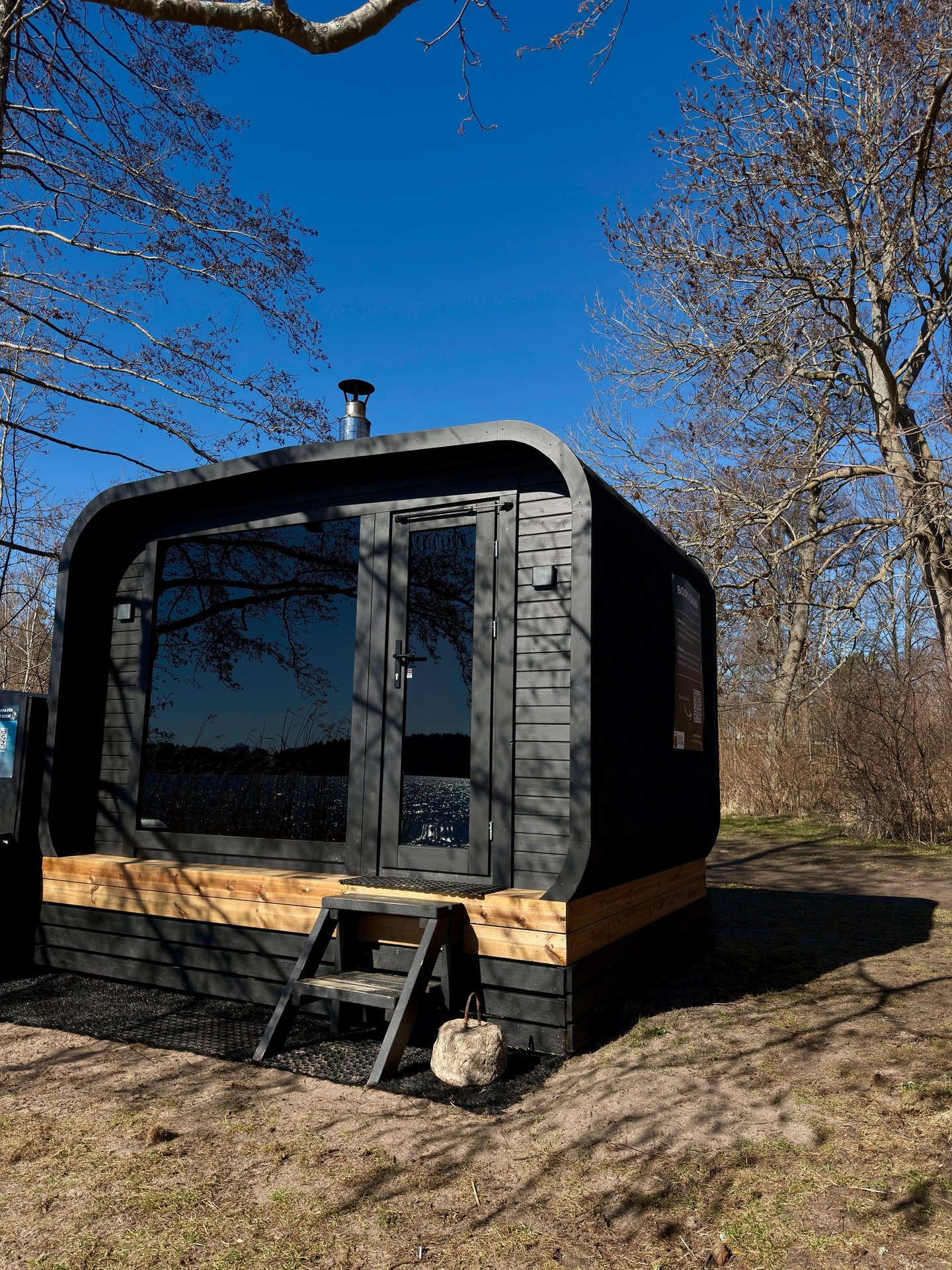 Ofta är bastun redan varm från ett tidigare sällskap, så boka gärna en tid direkt efter någon annan. Annars kan du komma tidigare och värma upp den själv. Ved och tändare finns på plats. Det tar cirka 30 minuter.