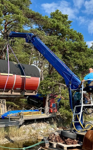 Vi bygger en vedeldad och flyttbar bastu, kör den själv eller låt oss leverera till dig eller ditt företag.