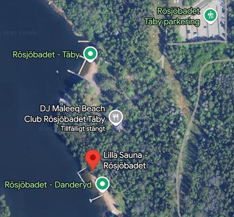 Promenera ca 300 m förbi kiosken till det andra badstället (Rösjöbadet - Danderyd)